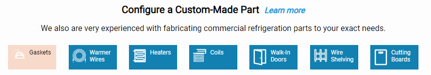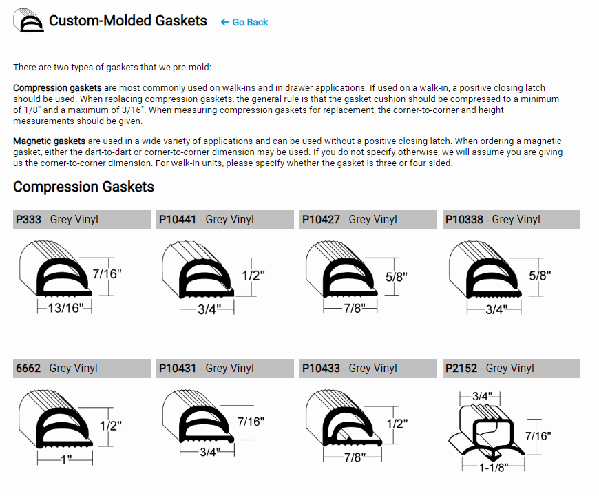 Clicking the Gaskets button gets you to a page where you can choose the gasket profile appropriate to your situation. The screenshot below shows just a small subset of the profiles we offer.